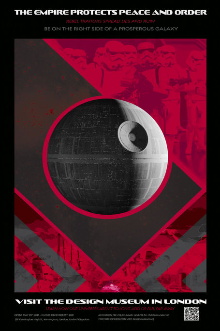 This poster is an exploration of motion design and poster design. My chosen clientele for this project is The Design Museum of London and Lucas Films, who collaborated to create a temporary exhibit featuring propaganda shown in the Star Wars Universe and ours, showing how our universes aren't so far far away. This project aims to create a successful design poster, with an interactive element. We used the application Artivie to bring our motion to life, so when you scan the poster you will reveal a secret motion underneath.